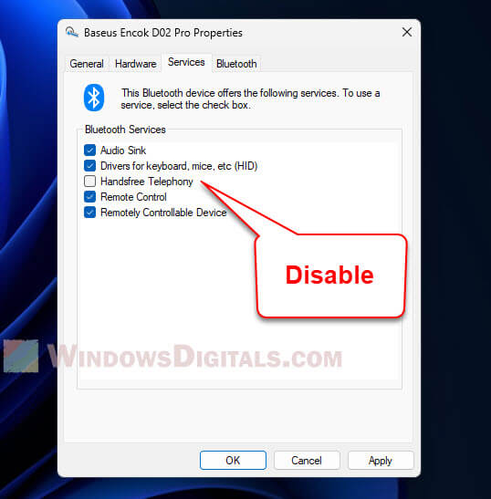 If you’re having this problem, you might need to change some settings for your Bluetooth headphones. Turning off the “Hands Free Telephony” service has helped some people.