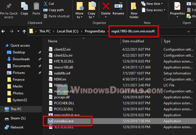 C:\ProgramData\regid.1993-06.com.microsoft. - Find the “svrwebui.exe” file and rename it to something like “svrwebui-disabled”.