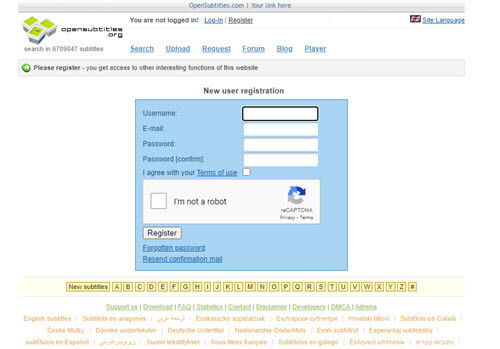 opensubtitles.orgon your web browser. - Hit “Register” and do what it says to make a new account. Make sure your email is right because you’ll need to confirm your account.